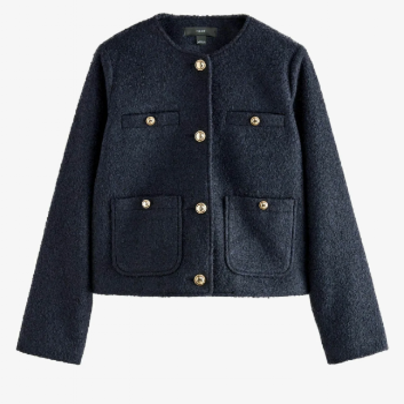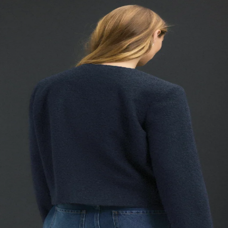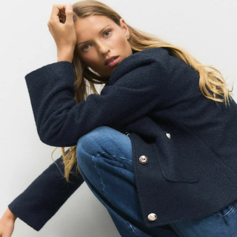 Coupe petite - Sans col - Manteau en laine - Bleu marine