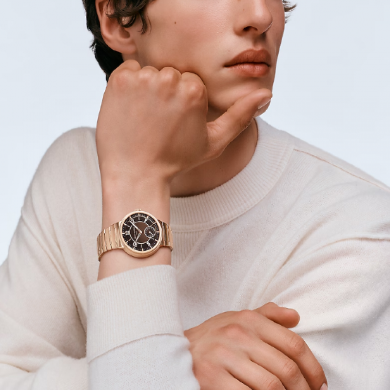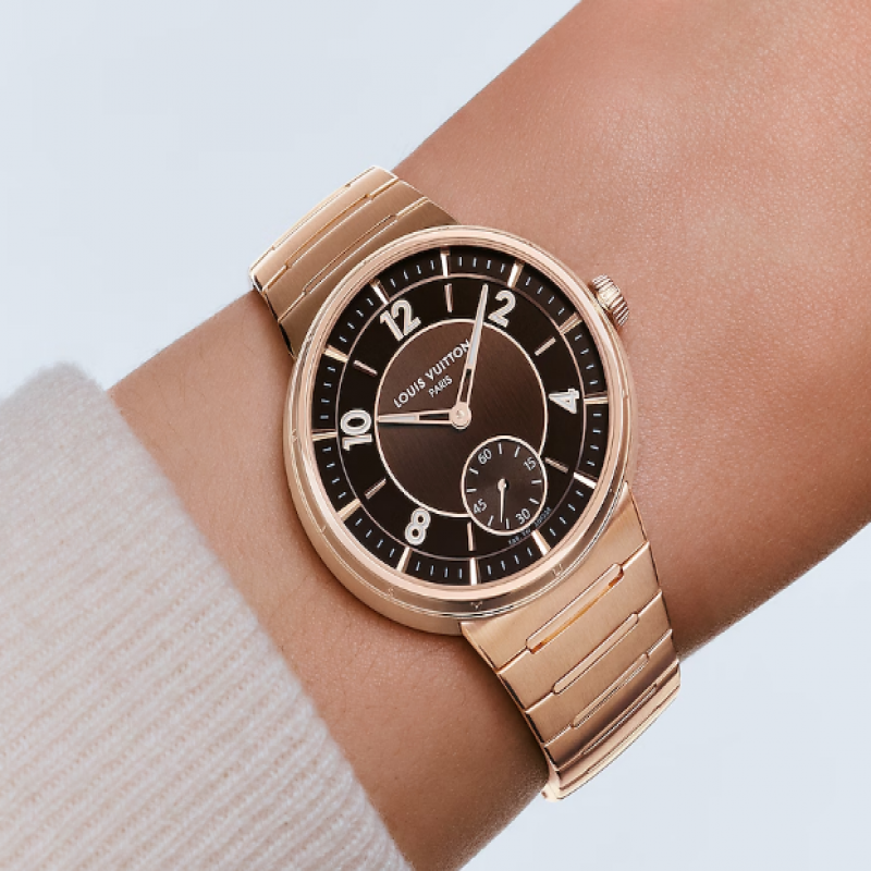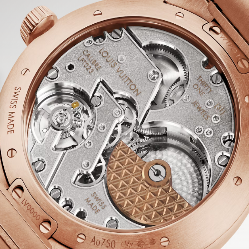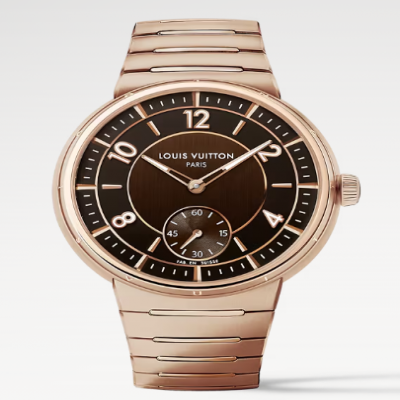 Avec son bracelet métallique intégré unique et son boîtier plus fin, la Tambour Automatic 40 mm en or rose revisite le design iconique de Louis Vuitton avec un esprit à la fois chic et sportif. Des finitions contrastées et des détails raffinés confèrent une sophistication indéniable à ce modèle polyvalent et unisexe. Dotée du nouveau calibre automatique exclusif LFT023, la montre arbore la signature « Louis Vuitton Paris, Fab. En Suisse », symbole de son élégance et de sa précision.